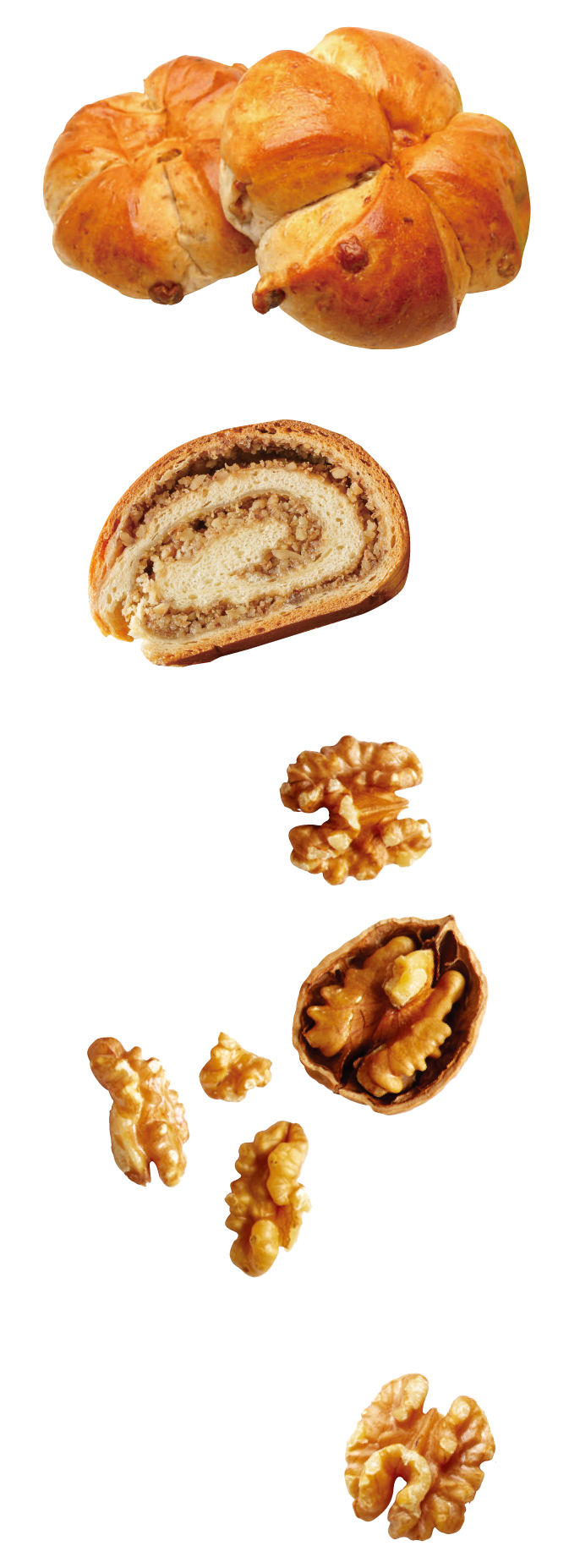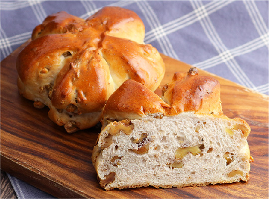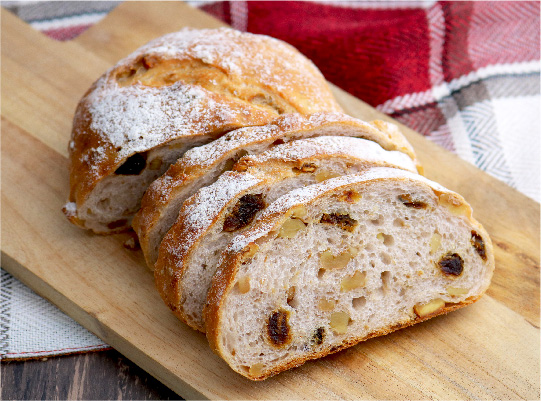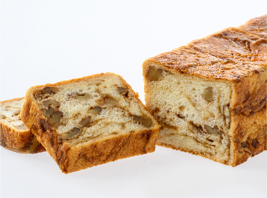 パネトーネ種を配合した、ソフトでしっとりした生地に25%のくるみを練り込み、香ばしさとほのかな甘みを感じられるくるみパンです。昨年から油脂を変更しリニューアル。さらに風味豊かにしっとりとした食感になりました。