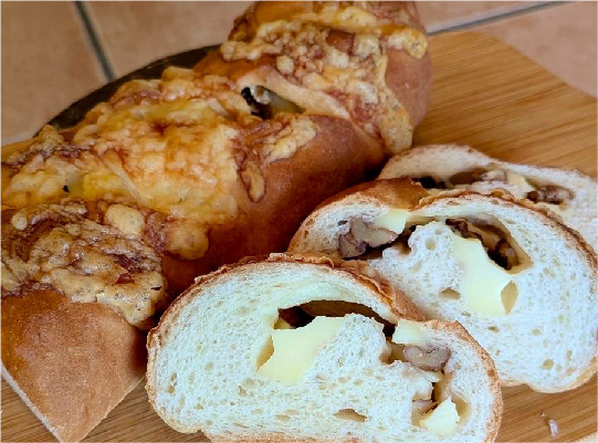 食パン生地にたっぷりのくるみと2種類のチーズ(ナチュラルダイスチーズとシュレットチーズ)をたっぷり使用した、くるみのザクッと食感と、チーズの香ばしい香りが楽しい美味しいパンです。お好みの厚さにスライスしてお召し上がりいただけます。