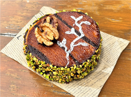サクサクのデニッシュ生地に、チョコレートの層を重ね、メープル香るくるみと濃厚で酸味のあるガナッシュをサンドしました。仕上げに、とろけるガナッシュをまとわせ、香ばしいピスタチオを付けて食感のアクセントに。